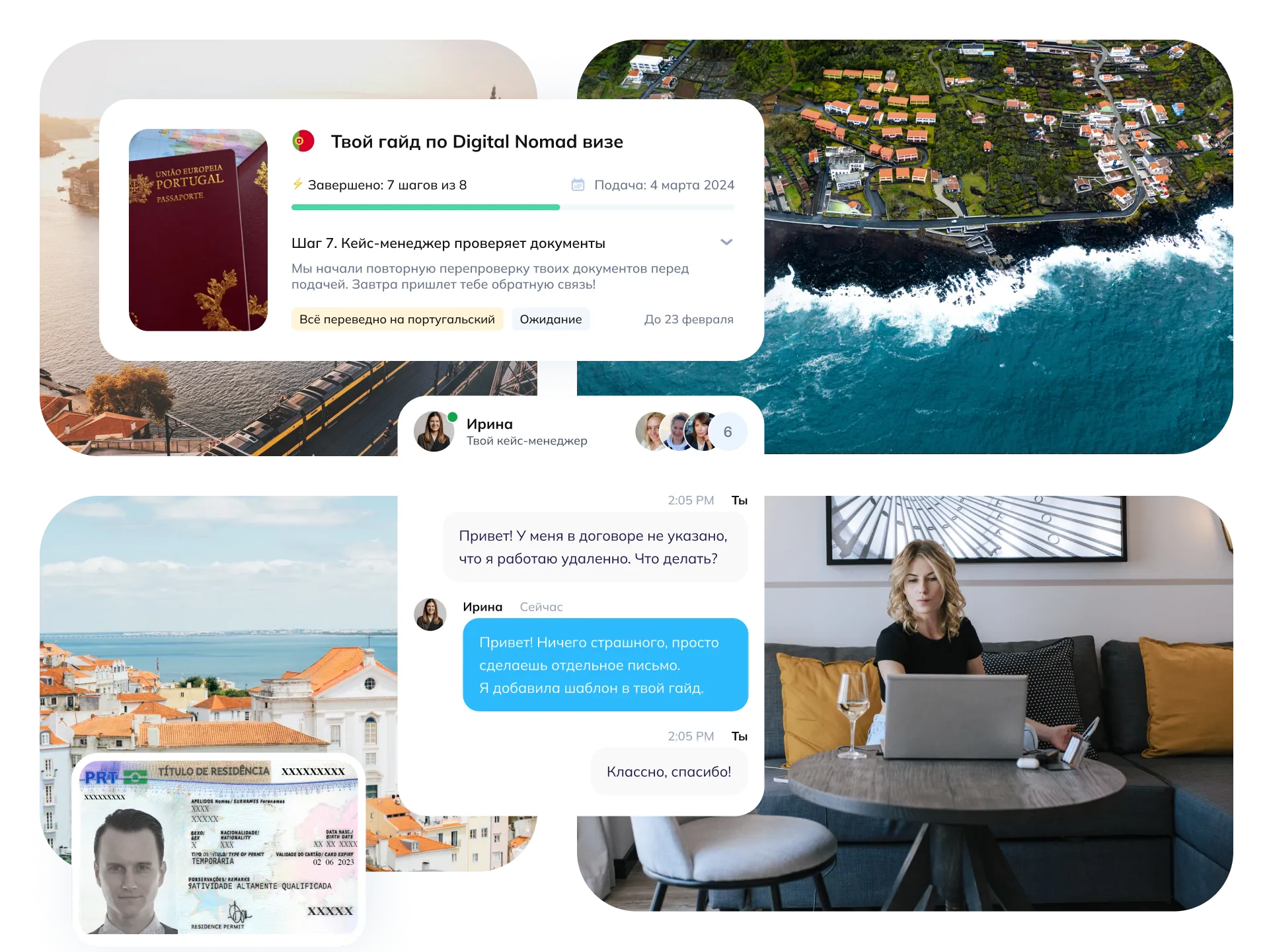 Пошаговая поддержка в личном кабинете с профессиональным консультантом (мы называем их кейс-менеджерами) пока не получишь ВНЖ, и даже позже!